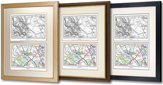 All maps can be selected by postcode or place name. All come in a choice of Deluxe frames with a pale ivory mount. All maps can be personalised by adding your own inscription.